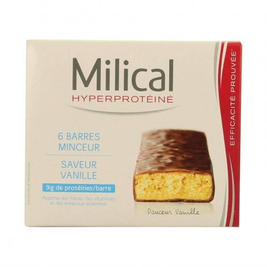 Les barres hyperprotéinée des laboratiores Milical sont la collation idéale pour maintenir son poids. Elles sont riches en vitamine et minéraux et appauvri en lipides et vous apportent l'énergie nécessaire pour la journée tout en participant activement à votre amincissement. La douceur du praliné vous fera passer un véritable moment de gourmandise.