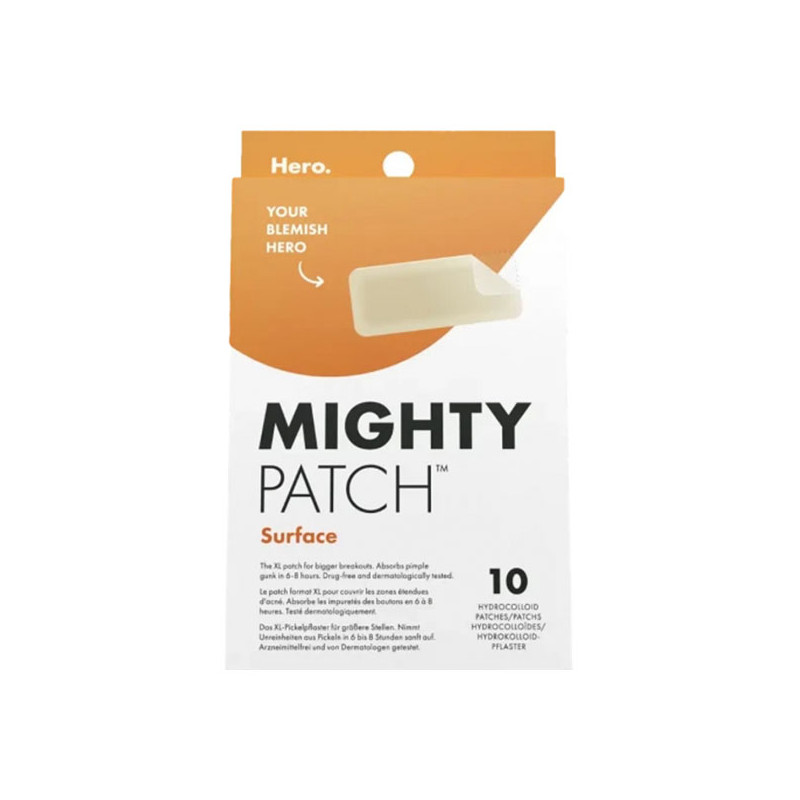 Quand un patch ordinaire ne suffit pas, MIGHTY PATCH Surface est le patch hydrocolloïde de taille XL pour couvrir les zones étendues d’acné et réduire l'apparence des boutons en 6 à 8 heures.
