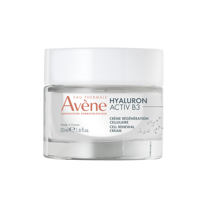 Les laboratoires dermatologiques Avène créent la crème Hyaluron Activ B3 concentrée à 0,2% en acide hyaluronique pur (haut et bas poids moléculaire) et niacinamide ( 6%) pour agir sur la cause du vieillissement et prolonger la vie des cellules*.