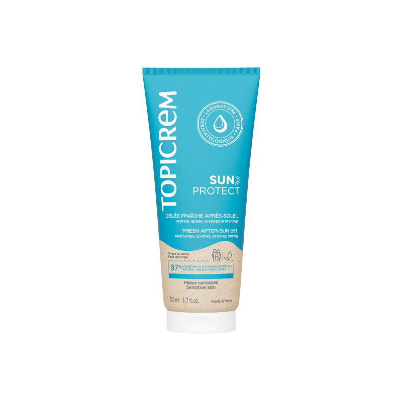 Enrichie en extrait d’Aloe Vera et Beurre de Karité, SUN PROTECT Gelée Fraîche Après-Soleil apaise et réhydrate les peaux sensibles exposées de toute la famille.