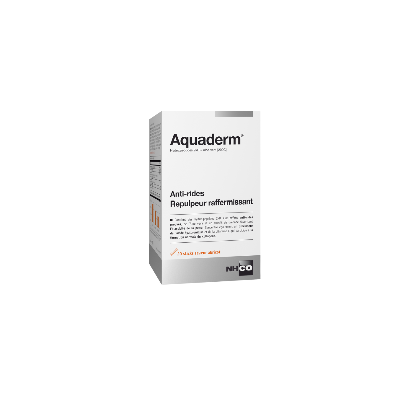 Le derme est une couche épaisse et vivante de la peau dans laquelle se trouvent le collagène, l’élastine et l’acide hyaluronique, qui confèrent à la peau sa fermeté, son élasticité et son hydratation. Pour réduire la profondeur des rides, le maintien de ces 3 substances naturelles est essentiel. Aquaderm, complément alimentaire issu de la recherche en micronutrition :