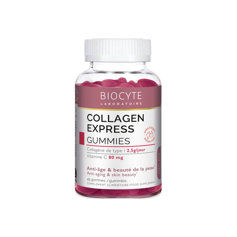 Biocyte Collagen Express Gummies est un complément alimentaire sous forme de gommes conçu pour lutter contre les signes du vieillissement cutané. Ce produit est enrichi en collagène, une protéine essentielle à la structure et à la fermeté de la peau, ainsi qu'en vitamine C qui favorise la production de collagène. Ces gummies, sans sucre et au goût fruité, sont une solution pratique pour prendre soin de sa peau au quotidien.