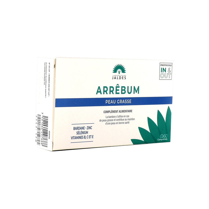 ARRÊBUM comprimés est un complément alimentaire spécialement conçu pour les peaux grasses : peau luisante, imperfections cutanées, cuir chevelu gras.