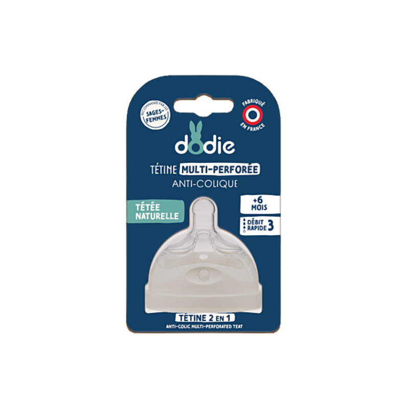 Dodie Tétine Multi-Perforée Anti-Colique Débit Rapide 6 Mois et + est une tétine dont :