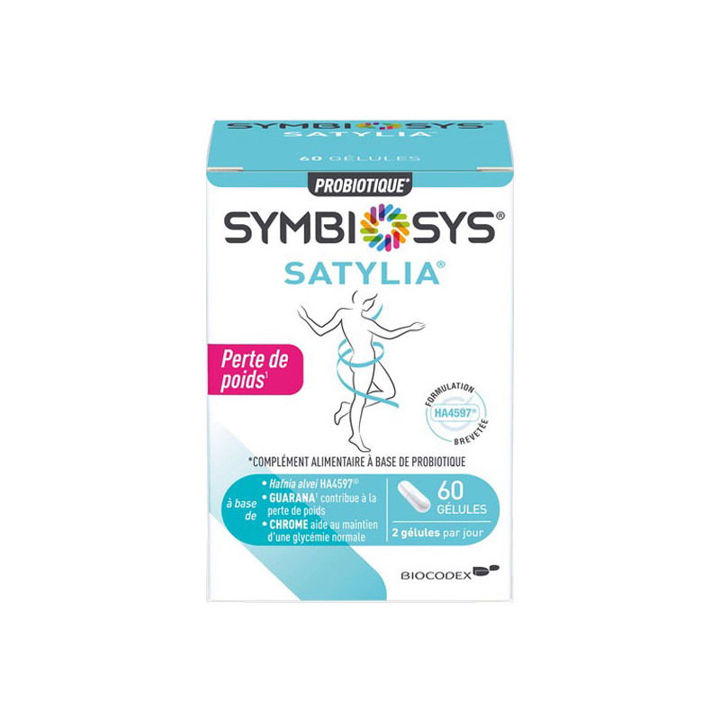 SYMBIOSYS Satylia est un complément alimentaire destiné à l’adulte formulé à partir de Guarana, de Chrome et d’une souche probiotique unique Hafnia alvei HA4597.