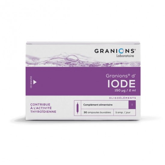Oligoélément qui contribue à la production des hormones thyroïdiennes : T4 et T3, sa forme active et à une fonction thyroïdienne normale.