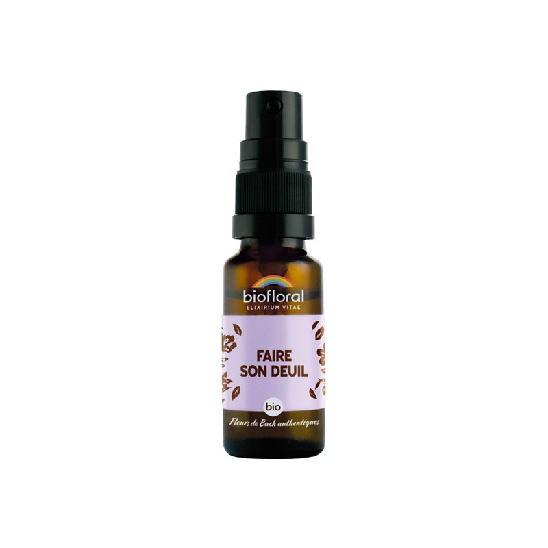 Découvrez le Complexe Faire son Deuil bio en spray de Biofloral. Fabriquée artisanalement et inspirée de la méthode originale du Dr Bach, cette synergie unique de 7 Fleurs de Bach biologiques vous accompagne dans votre reconstruction émotionnelle suite à la perte d'un être cher, une séparation ou un changement de vie.