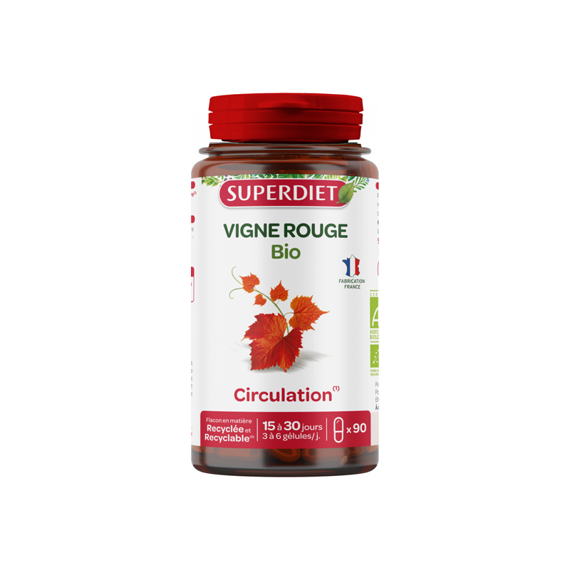 La Vigne rouge est reconnue pour ses nombreuses propriétés bénéfiques pour la circulation sanguine, favorisant le bon fonctionnement du système veineux ce qui contribue à alléger la sensation de lourdeur dans les jambes.