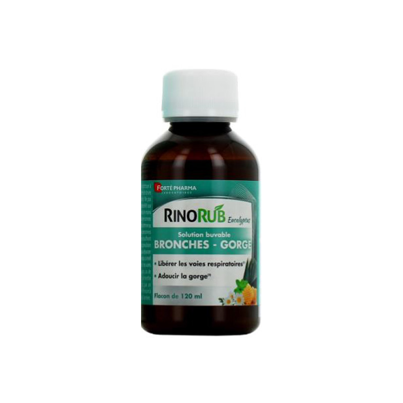 Découvrez RinoRub Bronches - Gorge Solution buvable, une solution avec un complexe naturel d'Eucalyptus, complété en plantes et vitamines.