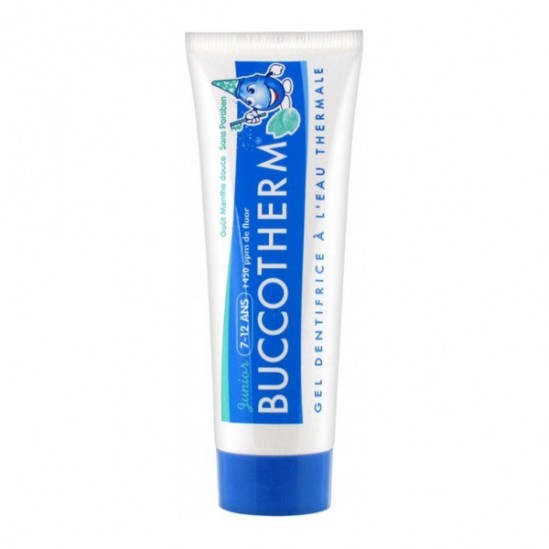 BUCCOTHERM JUNIOR 7-12 ans Menthe est un gel dentifrice doux.