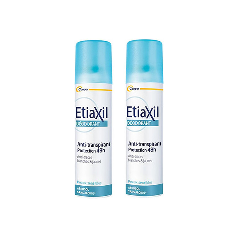 L’aérosol ETIAXIL déodorant a une action déodorante et anti-transpirante pendant 48h. Il prévient l’apparition de traces jaunes et blanches sur les textiles et respecte les peaux sensibles.