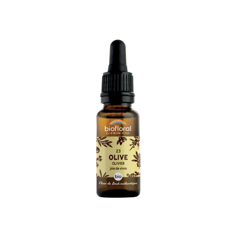 La Fleur de Bach 23 Olive - Olivier en compte-gouttes Bio et Demeter de Biofloral est votre compagnon dans ces moments, pour vous aider à renaître et à retrouver la lumière, l'entrain et le goût de vivre.