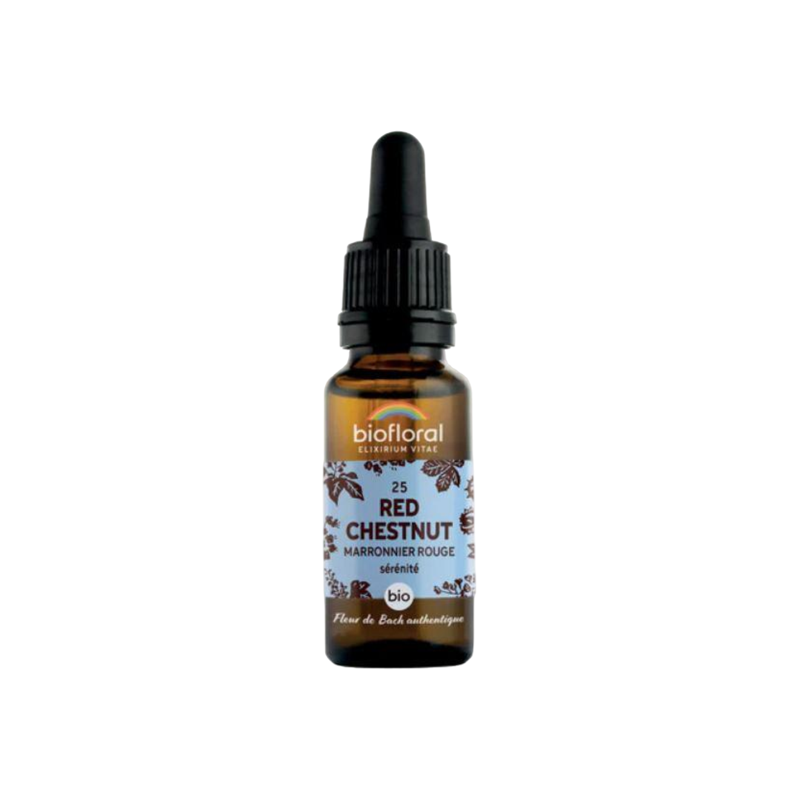 La Fleur de Bach 25 Red Chestnut - Marronnier Rouge en compte-gouttes Bio et Demeter de Biofloral est votre compagnon pendant ces moments, vous aidant à canaliser votre affection et à regarder vos proches avec plus de sérénité.