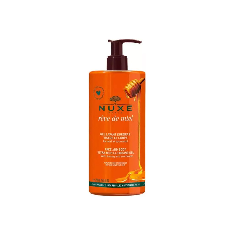 Offrez un nettoyage douceur à votre peau avec ce gel au Miel et au Tournesol en format XXL dans un flacon 100% en plastique recyclé.
