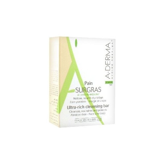 Aderma Pain Surgras 100 g à l'avoine rhealba d'origine biologique nettoie, nourrit, protège le visage et le corps de toute la famille. Idéal pour les peaux sèches, il respecte le film hydrolipidique cutané et laisse un film protecteur très confortable. Sa mousse onctueuse et crémeuse laisse sur votre peau un léger et agréable parfum. Sans paraben. Testé sous contrôle dermatologique, ophtalmologique et gynécologique. Attention : La vente des produits du Laboratoire Aderma est limitée à l'Espace Economique Européen et à 6 produits identiques par jour et par client.