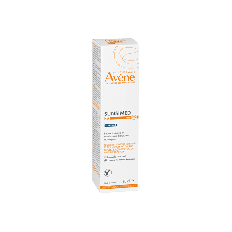 Sunsimed KA est un dispositif médical très haute protection SPF50+ qui contribue à prévenir les lésions cancéreuses (hors mélanomes) et précancéreuses de type kératose actinique ainsi que les lésions d'ADN photo-induites.