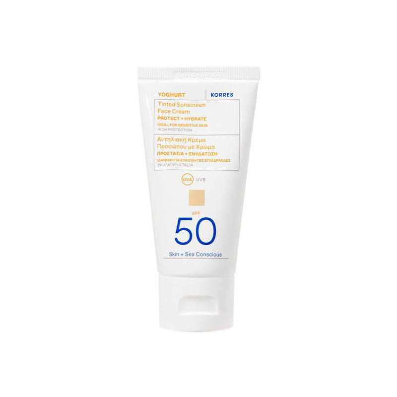 Crème solaire teintée SPF50, protection à large spectre ANTI-UVA + UVB, pour le visage.