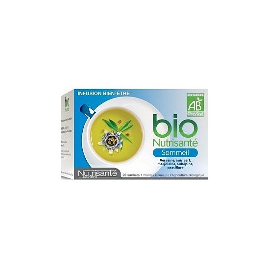 L’infusion Sommeil qui favorise la relaxation et contribue à retrouver un sommeil de qualité, est composée de verveine, de passiflore et de marjolaine aux vertus apaisantes et relaxantes, d’aubépine anti-stress et d’anis vert qui facilite la digestion pour favoriser un repos paisible.