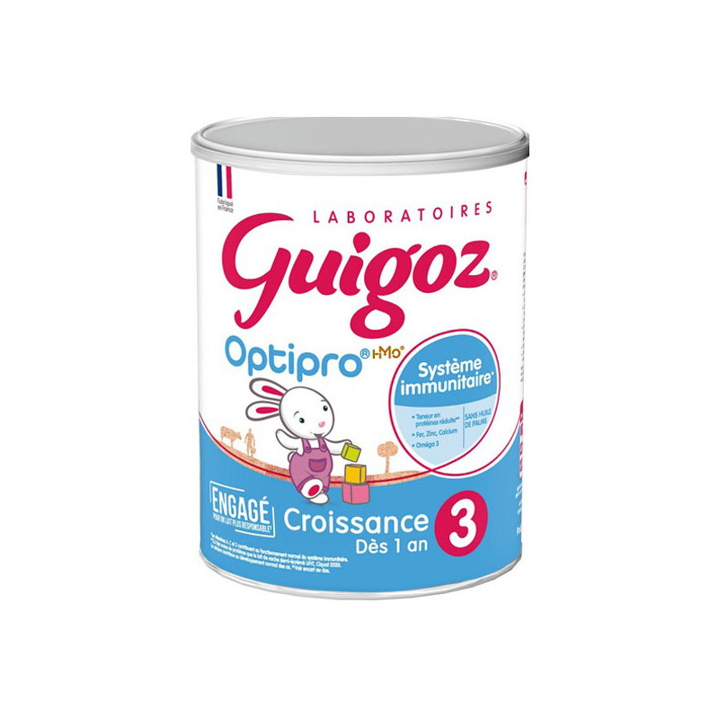 Découvrez GUIGOZ Optipro Croissance, la première formule avec 3,3 fois moins de protéines que le lait de vache* et une association de vitamines et minéraux, qui répond aux besoins des bébés entre 1 et 3 ans dans le cadre d'une alimentation diversifiée.