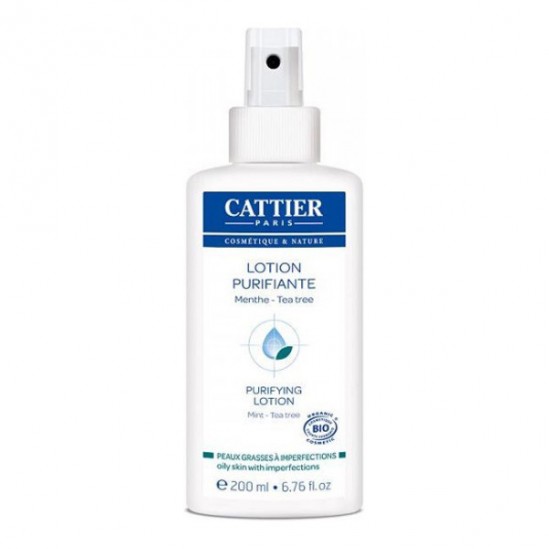 La Lotion purifiante Cattier bio, formulée avec des huiles essentielles bio de tea tree, romarin et menthe poivrée, parfait en douceur le nettoyage des peaux à imperfections, tonifie et rééquilibre l’épiderme tout en resserrant les pores. Enrichie en aloe vera, sa formule adoucit et apaise l’épiderme. Elle offre une agréable sensation de fraîcheur à une peau matifiée et oxygénée.