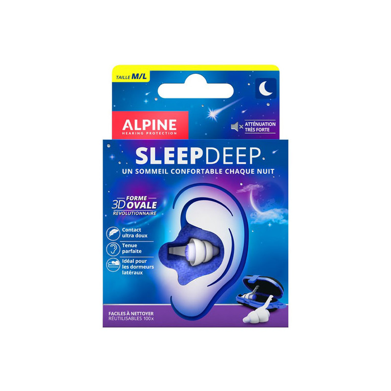 De plus, SleepDeep contient un cœur mou réduisant le bruit qui offre une atténuation maximale des bruits ambiants et des ronflements.