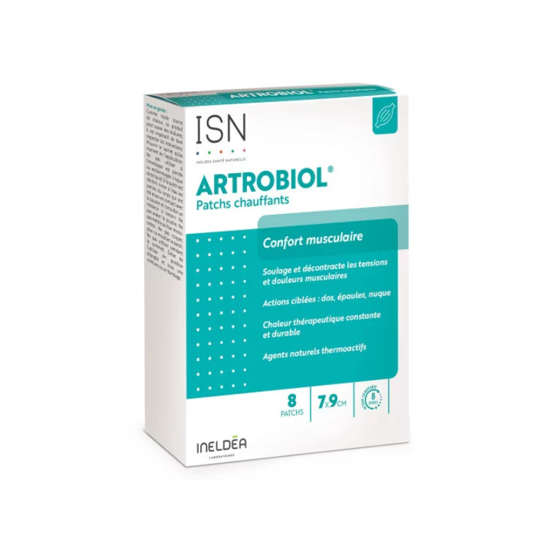 Le patch chauffant Artrobiol soulage et décontracte naturellement les tensions et douleurs musculaires, avec actions ciblées (dos, nuque, épaules). La formule contient des actifs naturels thermoactifs (charbon activé, poudre de fer et sel) qui produisent de la chaleur au contact de l’air.
