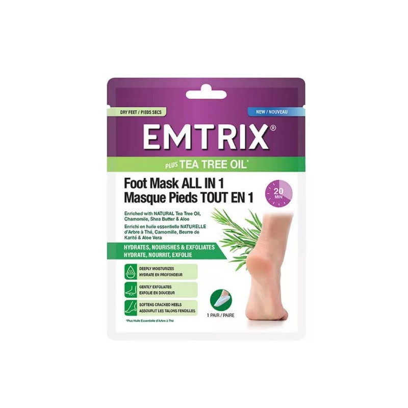- Le Masque Pieds "Tout en 1" Emtrix est spécifiquement conçu pour hydrater, nourrir et exfolier les pieds sec et talons fendillés en 20 minutes seulement.