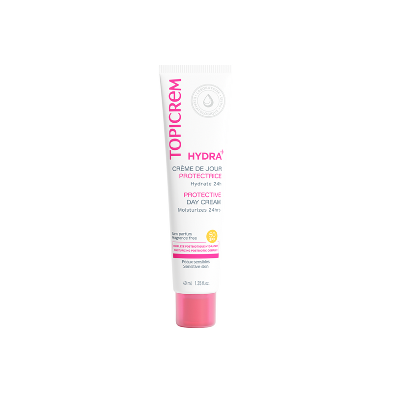 Enrichie en Complexe post biotique hydratant et Filtres solaires UVA/UVB, HYDRA+ Crème de jour protectrice SPF50 à la texture légère hydrate 24h*, réveille l’éclat et aide à prévenir le vieillissement cutané grâce à une haute protection SPF50 PA++++.