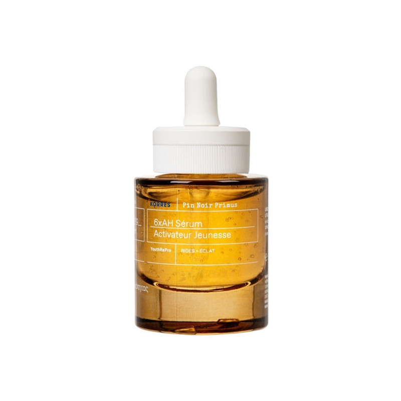 Le 6xAH Sérum Activateur Jeunesse est un sérum aqua-gel boosté qui contient six types d’acide hyaluronique pour lisser rides et ridules. Il scelle l’hydratation, améliore l’apparence générale et la radiance de la peau, offrant un teint éclatant de jeunesse. Enrichi en Bourgeon de Pin Noir, riche en antioxydants et vitamines, il revitalise l'aspect de la peau. Sa technologie YouthRePro, composée de 3 types d’acide hyaluronique et d’hexapeptide-8, favorise l’élasticité et repulpe la peau. Avec son boost hyaluronique, il renforce la barrière d’hydratation et améliore l’uniformité du teint.