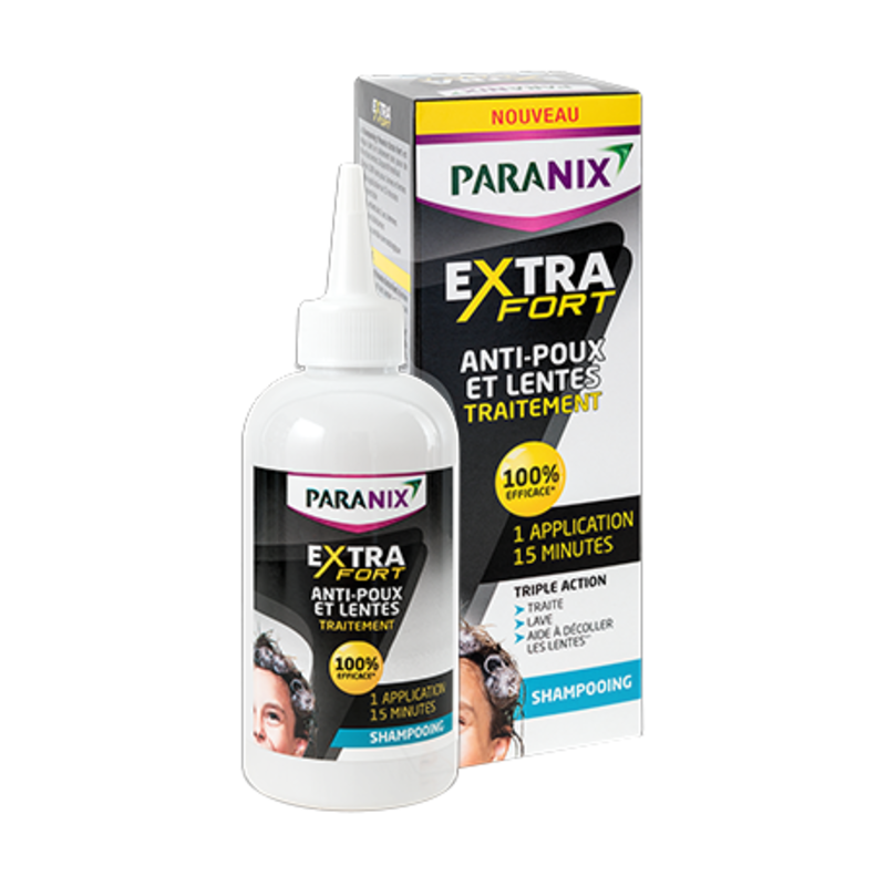 Grâce à sa triple action, le shampoing Paranix exra fort tue les poux, les lentes et les larves, il lave les cheveux et aide à décoller les lentes.