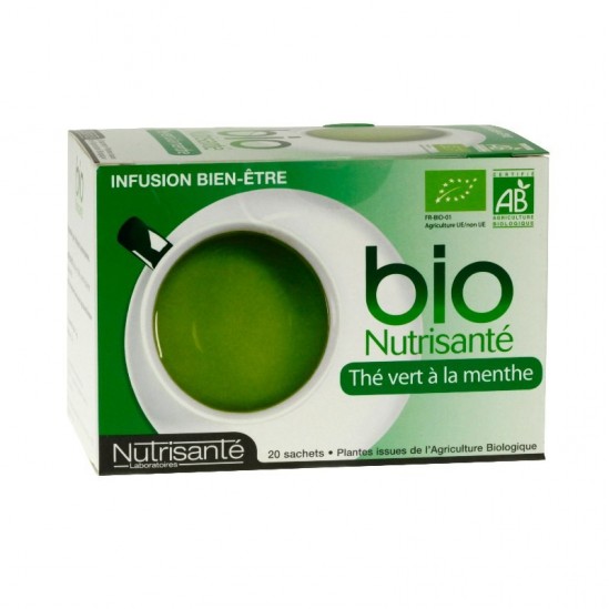L'infusion Bio Thé vert à la Menthe des laboratoires Nutrisanté est un remède naturel et efficace pour lutter contre les douleurs occasionnées par une digestion difficile et contre la fatigue.