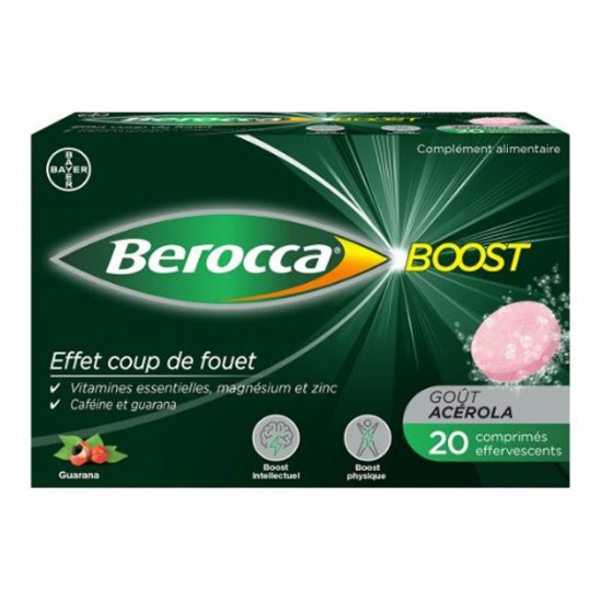 Berocca® Boost comprimés effervescents, c'est l'effet coup de fouet efficace ! Grâce à sa formule complète à base de 9 vitamines, zinc, magnésium, caféine et guarana, il agit à la fois sur le physique et le mental*.