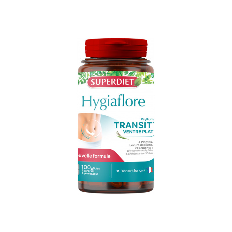 La nouvelle formule Hygiaflore associe des plantes, de la levure de bière et des ferments pour contribuer au transit intestinal.