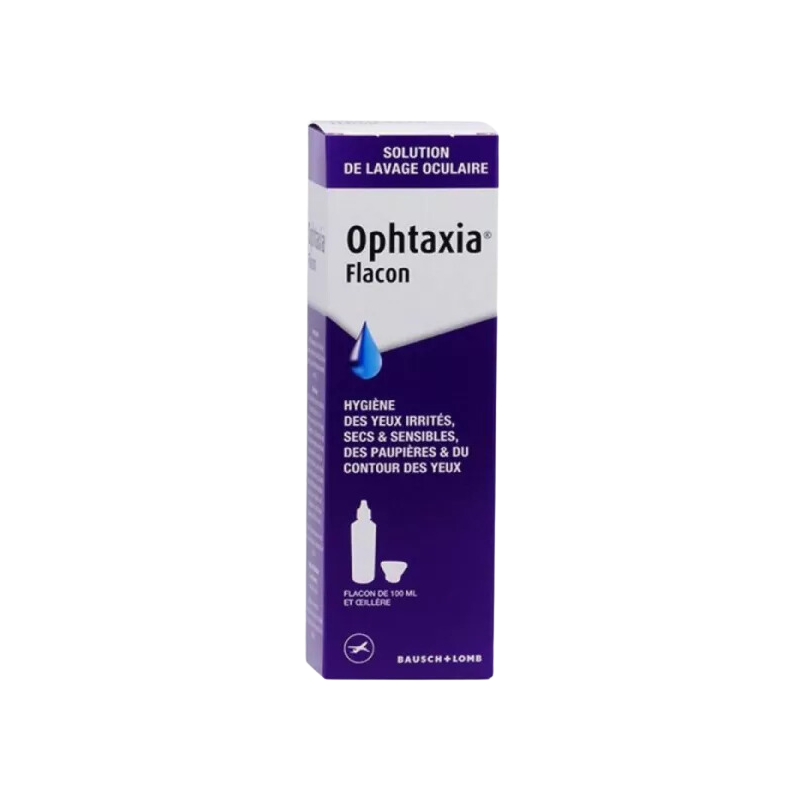 Bausch + Lomb Ophtaxia 100 ml est une solution de lavage oculaire, indiquée pour :
